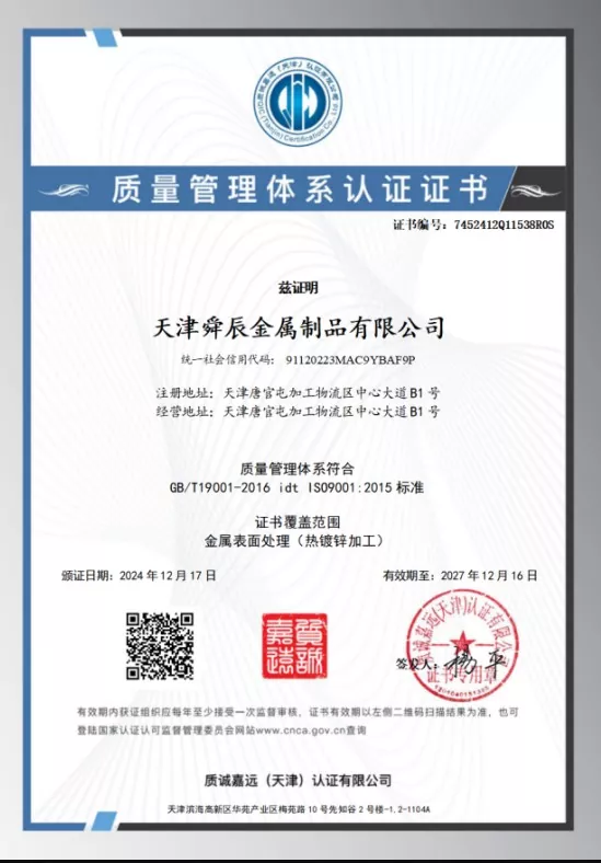 I. Core processum: Princeps temperatus immersio processus platingae, substrata pre curatur cum acido lavacro, dejectione, et plating adiumento, et postea solutione zinci fusili immergitur. Iaculum zinci metallurgice connexum subiecta est, cum adhaesione gradu 1; 2. Parametri clavis: Zinc iacuit crassitudo ≥ 85 µ m (conventionalis), customizabilis ut supra 100 μ m pro missione alta salinarum missionum, nulla vitia qualia sunt quae iacuerunt vel iacuerunt in superficie, salis imbre resistentia test ≥ 500 horarum; 3. Optimization curatio: Potest instructa processibus passivationibus et phosphating ad resistentiam corrosionis emendandam et resistentiam adhibendi angulum chalybem intinge galvanizatum.