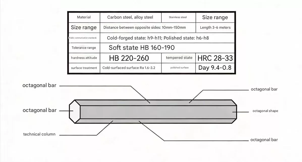 Distat a vexillum regularium octagonum chalybeum, cum figura metallica nativus solidi cum sectione transversali et asymmetrica structura, ut octogonum planae, octagonum eccentricium, seu functionum functionum sicut foramina clavis, foramina oleum, et flatus positio.