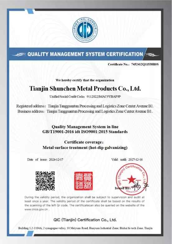 Societas Industrialis Tianjin Shunchen catella industrialis comprehensiva est societas. Statutum in 2014, eius caput in Daqiuzhuang Zonae Industrialis sita est, clavis chalybis centrum in Sinis. Negotiatio societatis multiplices agros operit, incluso profundo processus de ferro productorum et intinguendo fovendo productionem et processum. Eius subsidiarii locum inventarium galvanizatum annum rotundum plus quam viginti millia talentorum conservant, magnam scalam galvanizatam ferro macellum constituunt, quod horreas et distributiones integrat. Si eligendo vectes octogonales speciales informes, Shunchen Industriales tibi praebere possunt uberrimas qualitates et officia professionalia.